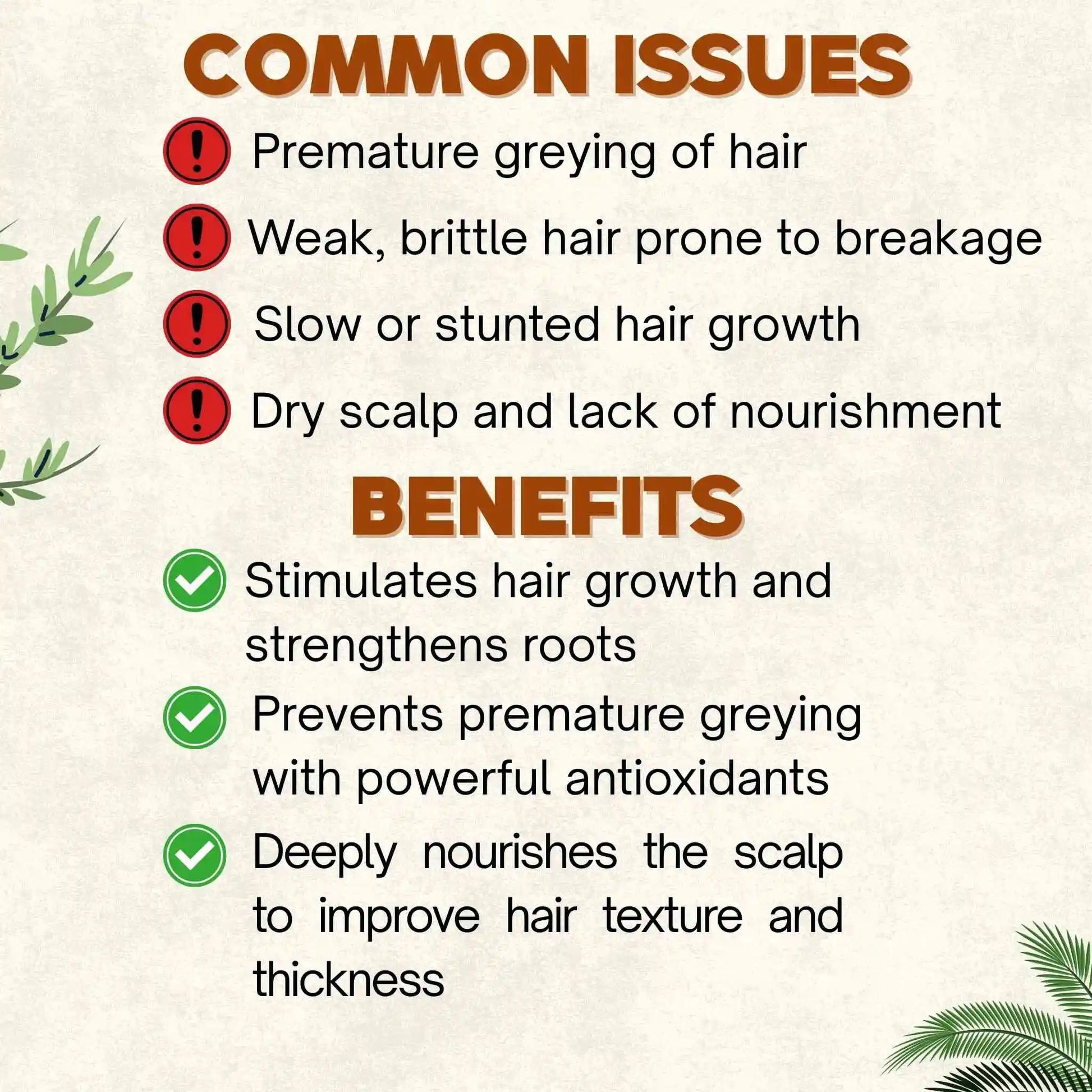 🌿 Dealing with hair thinning, premature greying, or weak roots? This powerful oil infused with curry leafs is your go-to natural solution!